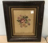 Old Cross Stitch Sampler, roses, old wood frame, 16"h., 13"w. Old Cross Stitch Sampler, roses, old wood frame, 16"h., 13"w.