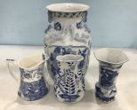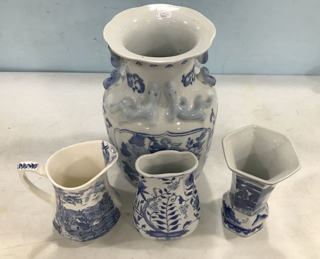 Modern Blue and White Pottery, Chinese Vase 14"h., Chinese Vases, Alfred Meakin pitcher, Baum bros. Modern Blue and White Pottery, Chinese Vase 14"h., Chinese Vases, Alfred Meakin pitcher, Baum bros.