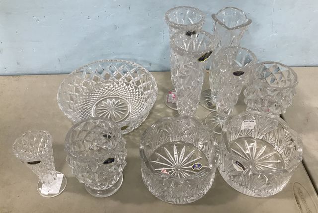 Group of Bohemian Crystal Glass Pieces , vases, bowls, Bohemian tags. Group of Bohemian Crystal Glass Pieces , vases, bowls, Bohemian tags.