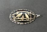 Vintage pendant marked sterling, glass birds design, 1 1/2" Vintage pendant marked sterling, glass birds design, 1 1/2"