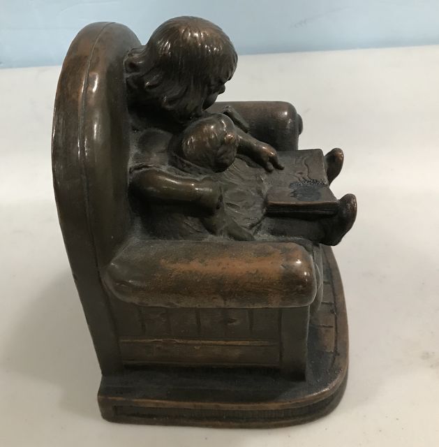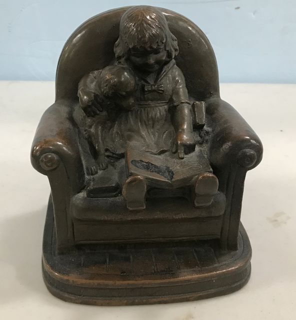 Vintage Brass Girl and Dog Bookend, felt bottom, 6"h. Vintage Brass Girl and Dog Bookend, felt bottom, 6"h.