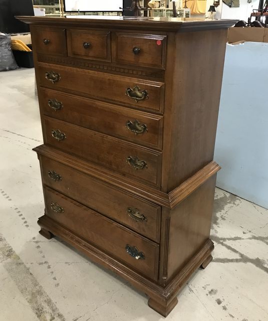 Vintage Early American Style Chest of Drawers, cherry, 8 drawers, exposed to mildew, 55"h., 40"w., 20"d. Vintage Early American Style Chest of Drawers, cherry, 8 drawers, exposed to mildew, 55"h., 40"w., 20"d.