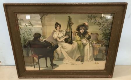 Early 20th Century Family Print, M. Goodman 89', vintage framed, glassed, 23"h., 29"w. Early 20th Century Family Print, M. Goodman 89', vintage framed, glassed, 23"h., 29"w.