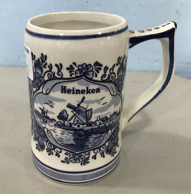 Delft Blue Heineken Mug, porcelain, made in Holland, 5"h. Delft Blue Heineken Mug, porcelain, made in Holland, 5"h.