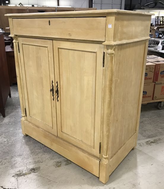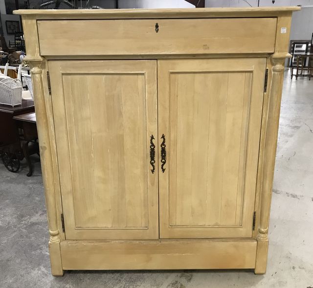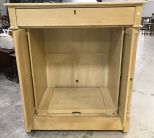 Large Bausman Company Modern Entertainment Cabinet, Maple color finish, double door, single top drawer with drop front, one piece, 62"h., 55"w., 30"d. Large Bausman Company Modern Entertainment Cabinet, Maple color finish, double door, single top drawer with drop front, one piece, 62"h., 55"w., 30"d.