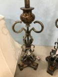 Pair of decorative rustic lamps, metal, has shades, 31"h. Pair of decorative rustic lamps, metal, has shades, 31"h.