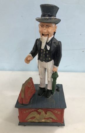 Uncle Sam Vintage Money Bank, cast iron, hand painted, 11"h. Uncle Sam Vintage Money Bank, cast iron, hand painted, 11"h.