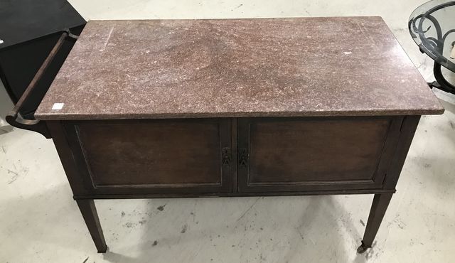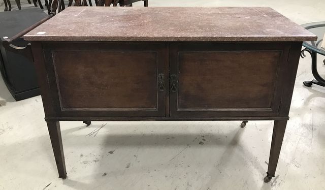 Antique Marble Top Washstand, on casters, towel rack, marble top, exposed to mildew, 29"h., 42"w., 21"d. Antique Marble Top Washstand, on casters, towel rack, marble top, exposed to mildew, 29"h., 42"w., 21"d.