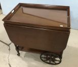 Cherry Tea Serving Cart, pull cart, two tier, single drawer, glass tray, has scratches, 30"h., 28"w. Cherry Tea Serving Cart, pull cart, two tier, single drawer, glass tray, has scratches, 30"h., 28"w.