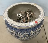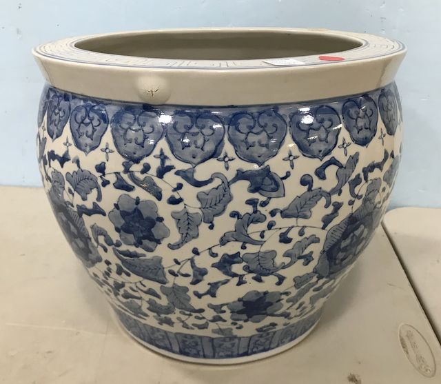 Chinese porcelain blue and white planter, 12"h., 14"w. Chinese porcelain blue and white planter, 12"h., 14"w.