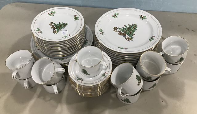 Holiday Hostess China Set, 12 dinner plates, 12 salad plates, 12 saucers, 11 cups. Holiday Hostess China Set, 12 dinner plates, 12 salad plates, 12 saucers, 11 cups.