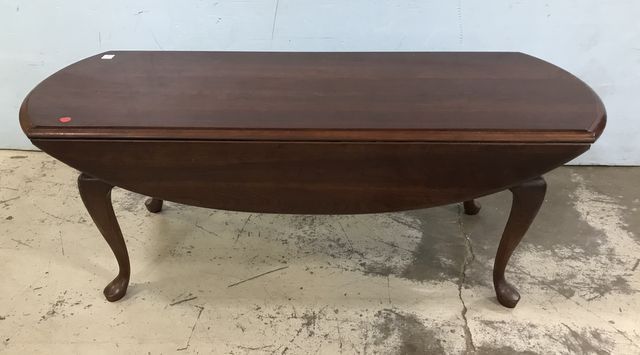 Cherry Queen Anne Style Coffee Table, drop leaf, exposed to mildew, 17"h., 46"w. Cherry Queen Anne Style Coffee Table, drop leaf, exposed to mildew, 17"h., 46"w.