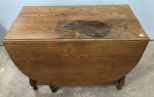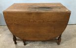 Vintage Oak Gate Leg Dining Table, top needs adjusting, barley twist, has dark spot, 29"h., 42"w., 21"d. Vintage Oak Gate Leg Dining Table, top needs adjusting, barley twist, has dark spot, 29"h., 42"w., 21"d.