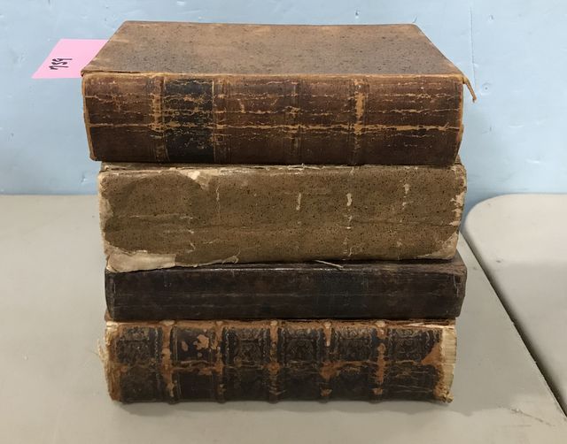 Four Antique leather books, has wear. Four Antique leather books, has wear.