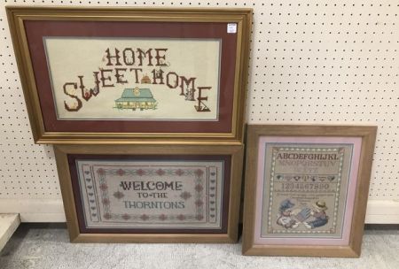 Three Needle Point Samplers, Home Sweet Home, Welcome to the Thorntons, Alphabet Sampler. Three Needle Point Samplers, Home Sweet Home, Welcome to the Thorntons, Alphabet Sampler.