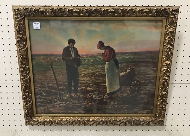 Vintage Farmer's Print, gold gilt framed, glassed, 19"h., 23"w. Vintage Farmer's Print, gold gilt framed, glassed, 19"h., 23"w.