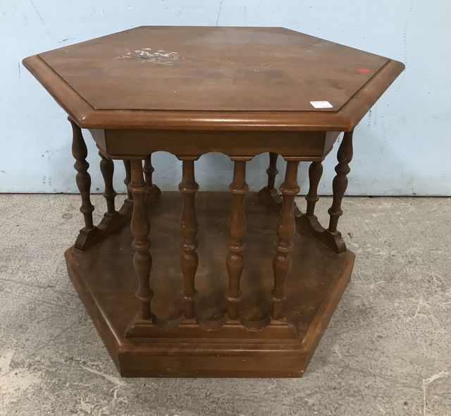 Ethan Allen Octagon Lamp Table, two tier, 19"h., 24"w. Ethan Allen Octagon Lamp Table, two tier, 19"h., 24"w.