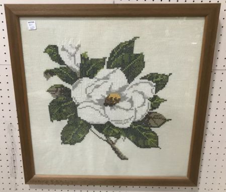 Magnolia Needle Point Framed, 25"h., 25"w. Magnolia Needle Point Framed, 25"h., 25"w.
