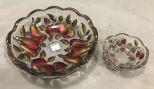 Clear glass fruit bowl with colored fruit, pressed glass, 10"dia., and small berry bowl. Clear glass fruit bowl with colored fruit, pressed glass, 10"dia., and small berry bowl.