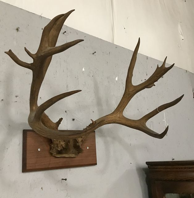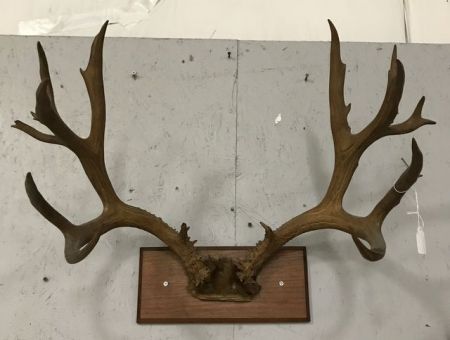 Vintage Mule Deer Antler Mount, on wood mounting plaque, vintage mule non typical deer. Vintage Mule Deer Antler Mount, on wood mounting plaque, vintage mule non typical deer.