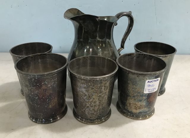 946 Silver Plate Pitcher and Five Silver Plate Juleps