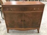English mahogany, two door, single drawer, back leg needs repair, one door needs work, has finish wear, 45"h., 32"w., 13"d. English mahogany, two door, single drawer, back leg needs repair, one door needs work, has finish wear, 45"h., 32"w., 13"d.