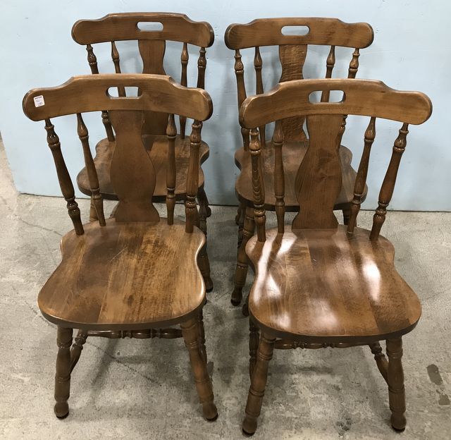 Four Primitive Style Side Chairs, spindle back, Windsor style, 1980's-90's, above average condition. Four Primitive Style Side Chairs, spindle back, Windsor style, 1980's-90's, above average condition.