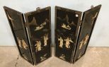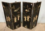 Two Oriental black lacquer wall panels, Mother of Pearl Style Figurines, each panel is 36"h., 12"w. Two Oriental black lacquer wall panels, Mother of Pearl Style Figurines, each panel is 36"h., 12"w.
