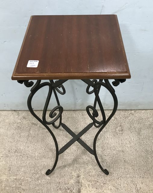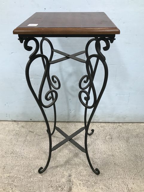 Small Modern Plant Stand, metal base, square wood top, 26"h., 11"w. Small Modern Plant Stand, metal base, square wood top, 26"h., 11"w.