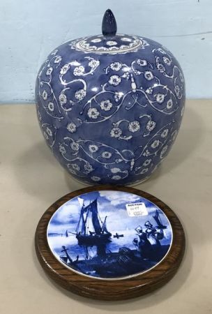 1049 Modern Chinese Ginger Jar and Blue & White Wall Plaque
