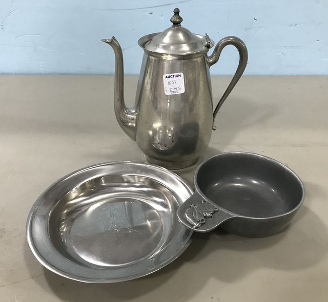 1057 Pewter Pitcher, Stainless Bowl, and Metal Bowl