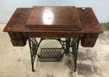 Antique Southern Pride Sewing Machine, oak case with drawers, singer iron base, exposed to mildew, 29"h., 35"w. Antique Southern Pride Sewing Machine, oak case with drawers, singer iron base, exposed to mildew, 29"h., 35"w.