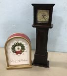 Christmas Clock, plays Christmas Carols and Miniature Grandfather Clock, battery operated, 13"h. Christmas Clock, plays Christmas Carols and Miniature Grandfather Clock, battery operated, 13"h.