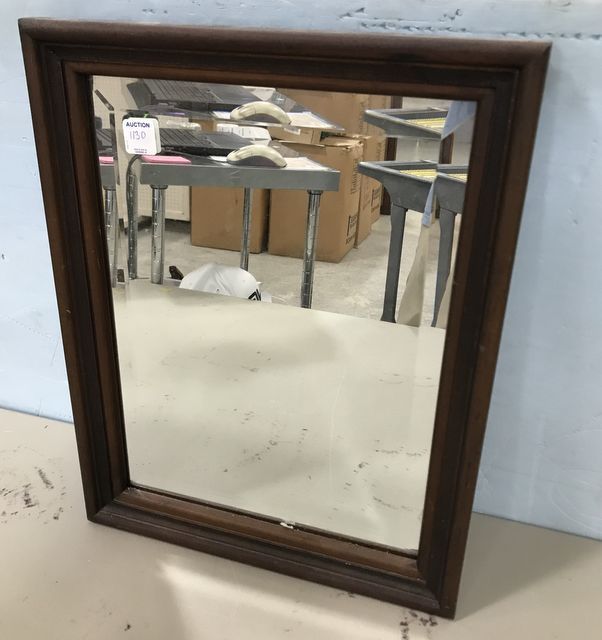 Small Beveled Wood Framed Mirror, 18"h., 14"w. Small Beveled Wood Framed Mirror, 18"h., 14"w.