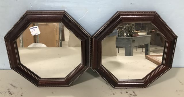 Pair of Octagon Framed Mirrors, modern, 11"h., 10"w. Pair of Octagon Framed Mirrors, modern, 11"h., 10"w.