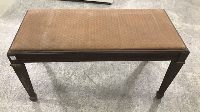 Mahogany French Style Piano Bench, upholstered top, exposed to mildew, 18"h., 34"w Mahogany French Style Piano Bench, upholstered top, exposed to mildew, 18"h., 34"w