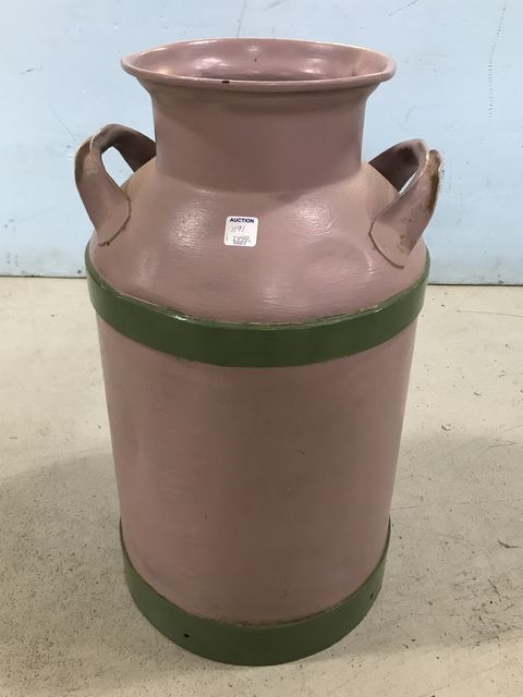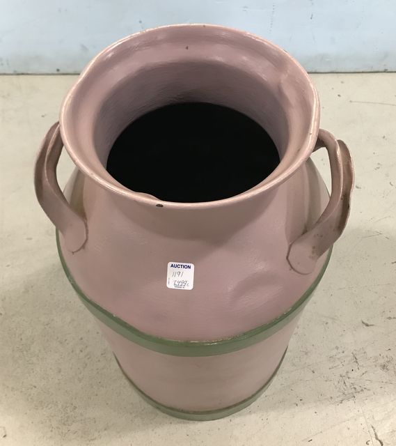 Painted Metal Milk Jug, no lid, has few dents, 24"h. Painted Metal Milk Jug, no lid, has few dents, 24"h.