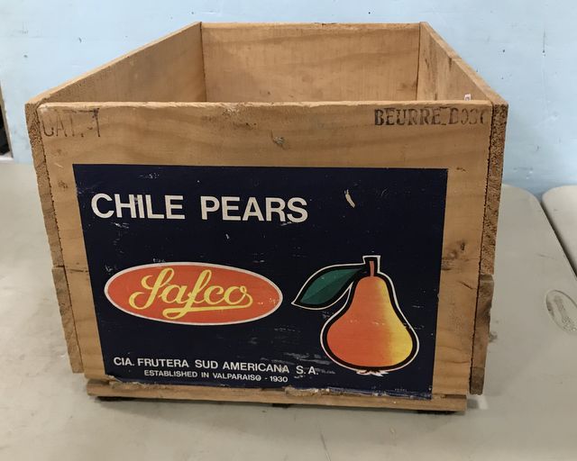 Chile Pears Wood Crate, 9"h., 20"long. Chile Pears Wood Crate, 9"h., 20"long.