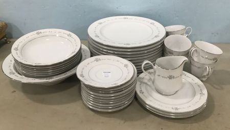 Majestic "Winslow" China Set, dinner plates, bowls, serving bowl, saucers, cups, creamer, salad plates, few chips. Majestic "Winslow" China Set, dinner plates, bowls, serving bowl, saucers, cups, creamer, salad plates, few chips.