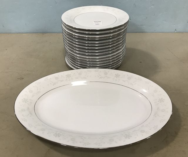 Porcelain China Platter and Salad Plates, Japan, floral pattern. Porcelain China Platter and Salad Plates, Japan, floral pattern.