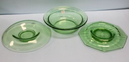 2149 Large Green Depression Glass Bowl, Centerpiece & Cake Plate