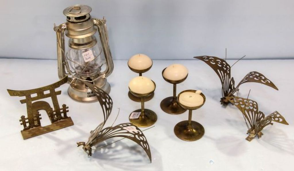 2828 Brass Butterflies, Lantern & Brass Candle Holders