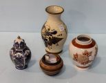 Hand crafted Navajo pottery 3 1/2" dia. pot signed by artist, ginger jar, blue and white 4" h. ginger jar & 9 1/2" h. Mexican pottery vase Hand crafted Navajo pottery 3 1/2" dia. pot signed by artist, ginger jar, blue and white 4" h. ginger jar & 9 1/2" h. Mexican pottery vase
