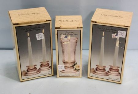2852 Pink Depression Candle Lamp & Four Candlesticks