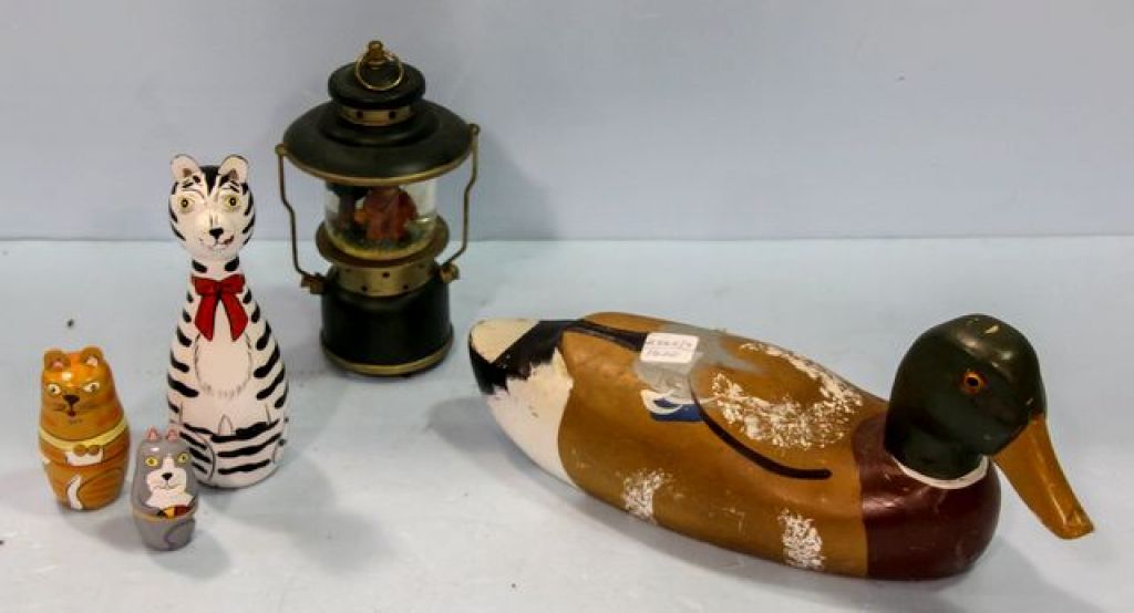 2865 Painted Wood Duck, Snowball Lantern & Nest of Animal Boxes