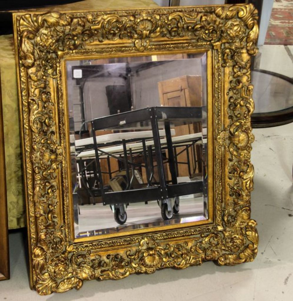 2167 Beveled Mirror with Heavily Carved Gold Frame
