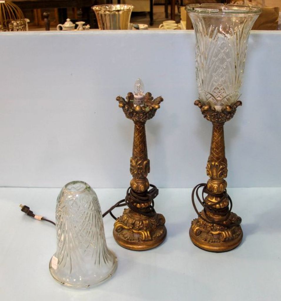With pressed glass shades; 22 1/2" h. With pressed glass shades; 22 1/2" h.