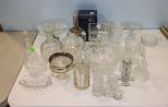Includes individual salts, decanter, cake plate, footed bowl, candy dish base, covered jar, candle holders and etched bell Includes individual salts, decanter, cake plate, footed bowl, candy dish base, covered jar, candle holders and etched bell