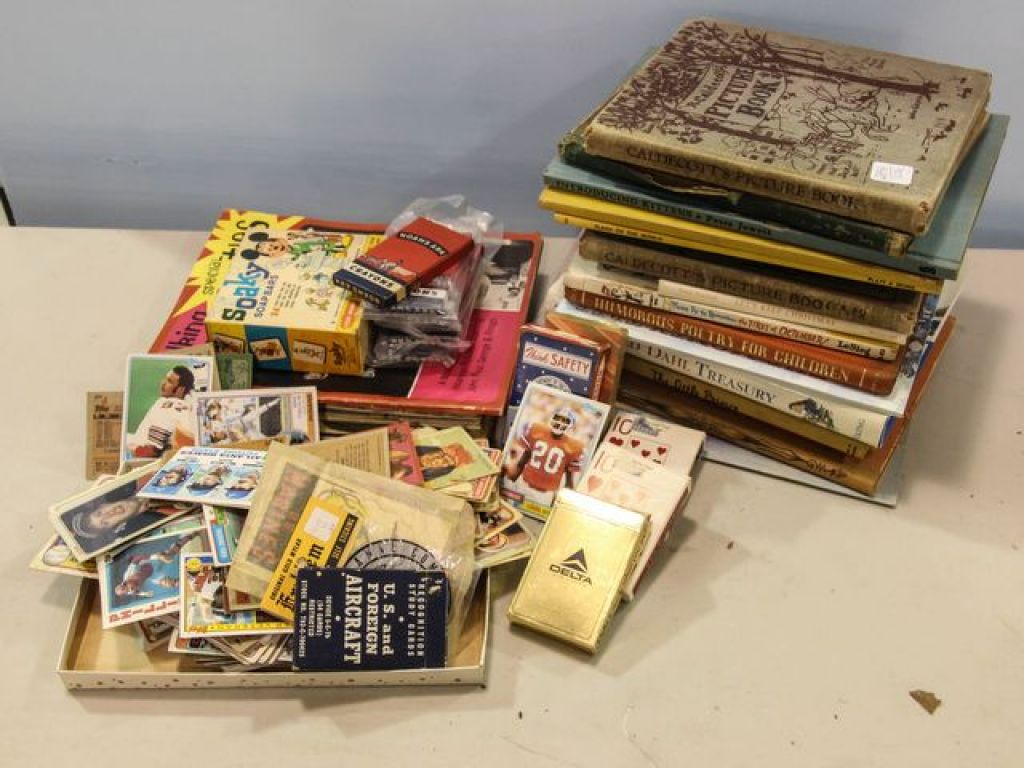 Includes children's books, Beatles magazine, baseball cards and football cards Includes children's books, Beatles magazine, baseball cards and football cards