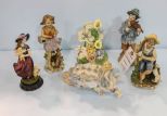 Three bisque figurines, angel with cart, resin lady figurine & resin cross Three bisque figurines, angel with cart, resin lady figurine & resin cross